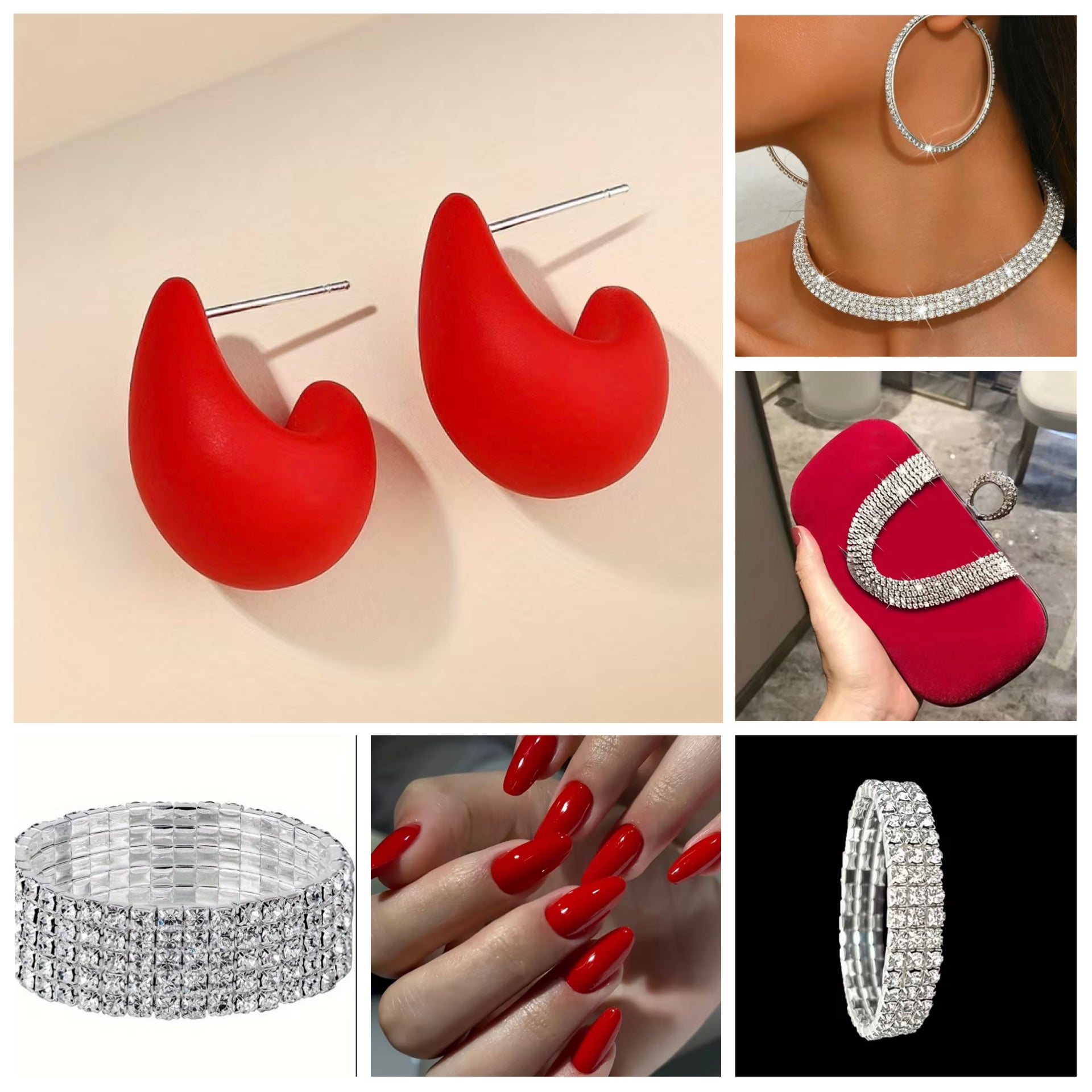 From the eye-catching rhinestone clutch to layers of sparkling bracelets and dramatic earrings, every piece is chosen to create a coordinated, luxe look that feels powerful, feminine, and unforgettable. It’s the perfect gift for someone who loves to stand out — or a well-deserved treat for yourself.