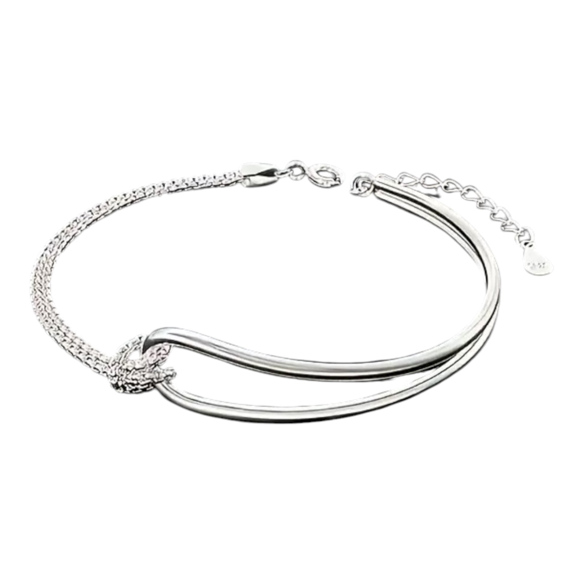 Crafted from genuine 925 sterling silver, this unisex piece blends timeless sophistication with a modern edge. Its sleek arc twist design captures the perfect balance between fluid motion and structured elegance, making it a standout accessory for any occasion.